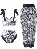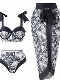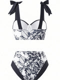 Klasik siyah-beyazın asaletini tropikal çiçek desenleriyle buluşturan bu bikini seti, hem sofistike hem de modern bir sahil tarzı sunuyor. Fiyonk detaylı omuz askıları feminen bir dokunuş katarken, yüksek bel bikini altı konforlu bir kullanım sağlıyor. Aynı desenli pareo ise kombini tamamlayarak şıklığı bir üst seviyeye taşıyor.