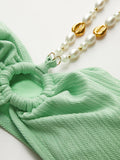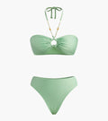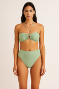 Üst Parça: Straplez tasarımı, ortasında zarif bir halka detayı ve incilerle süslenmiş bağlama ipiyle modern ve şık bir görünüm sunar.