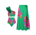 Üst Parça: Tek omuzdan fırfırlı detaylı, asimetrik kesimli bikini üstü. Canlı yeşil zemin üzerine yoğun pembe çiçek desenleri ile feminen ve şık bir görünüm sunar. Tek omuz tasarımı sayesinde modern ve farklı bir stil yakalanır.