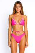 Üçgen üst kısmında yer alan deniz kabuğu süslemeleri, mayoya bohem ve tropikal bir hava katıyor.