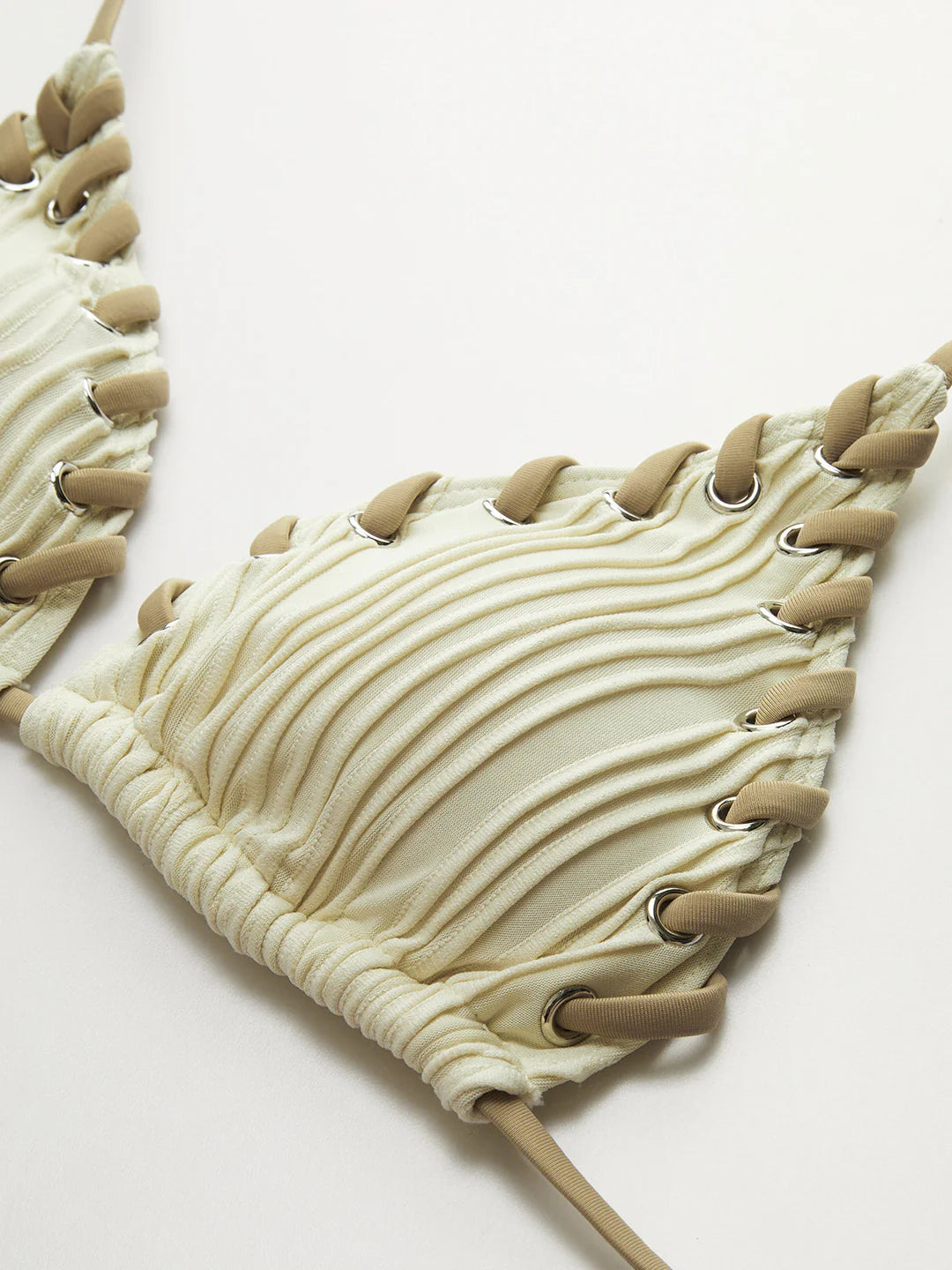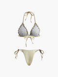 Üçgen üst ve bağlamalı alt parçadan oluşan klasik bir bikini modeli.