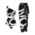 Siyah ve beyazın zamansız uyumu, plaj stiline sofistike bir dokunuş katıyor. Desenlerin soyut ve modern olması, sade şıklığı tercih edenler için ideal bir seçenek oluşturuyor.