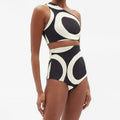 Tasarım: Yüksek bel kesimi, karın bölgesini toparlayarak hem şık hem de rahat bir kullanım sunar. Mayonun desenleri alt parçada da devam eder, bütünlük sağlar.