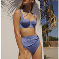 Zarif pastel mavi tonu ile dikkat çeken bu bikini seti, minimal tasarımıyla yazın en şık parçalarından biri olmaya aday. Destekli üst modeli feminen bir görünüm sunarken, yüksek bel bikini altı toparlayıcı özelliği sayesinde vücuda uyum sağlar. Aynı renkte tasarlanmış uzun pareo ise kombini tamamlayarak sahil stilinize sofistike bir dokunuş katar.