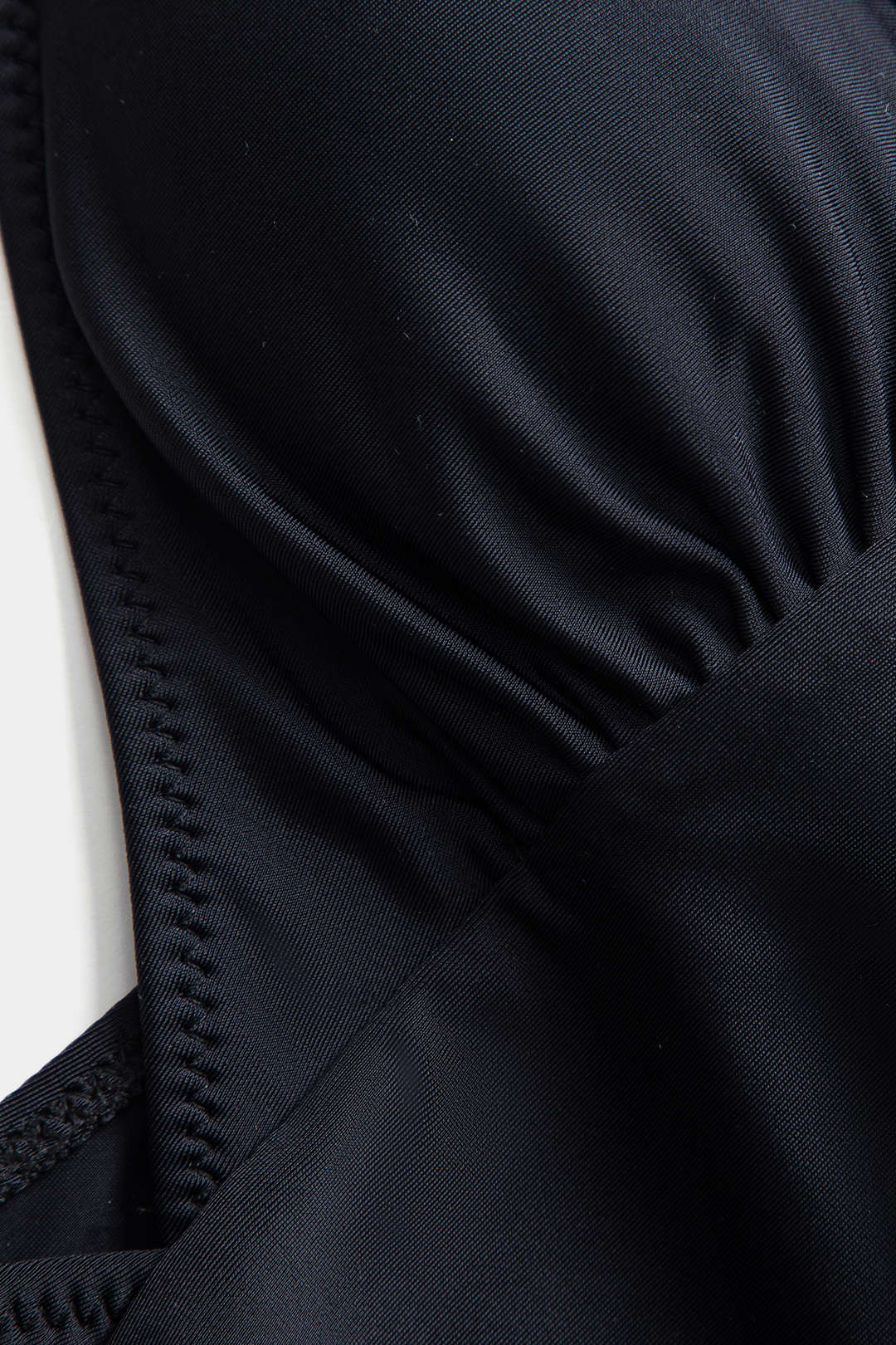 Büzgü detayları özellikle karın bölgesinde toparlayıcı bir etki yaratarak daha fit bir görünüm sunar.