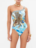 Leopar desenleri, altın detaylarla birleştirilmiş ve mavi tonlarıyla hareketlendirilmiş.