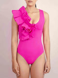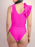 Yan omuz kısmındaki volan detayları, feminen ve zarif bir dokunuş ekler.