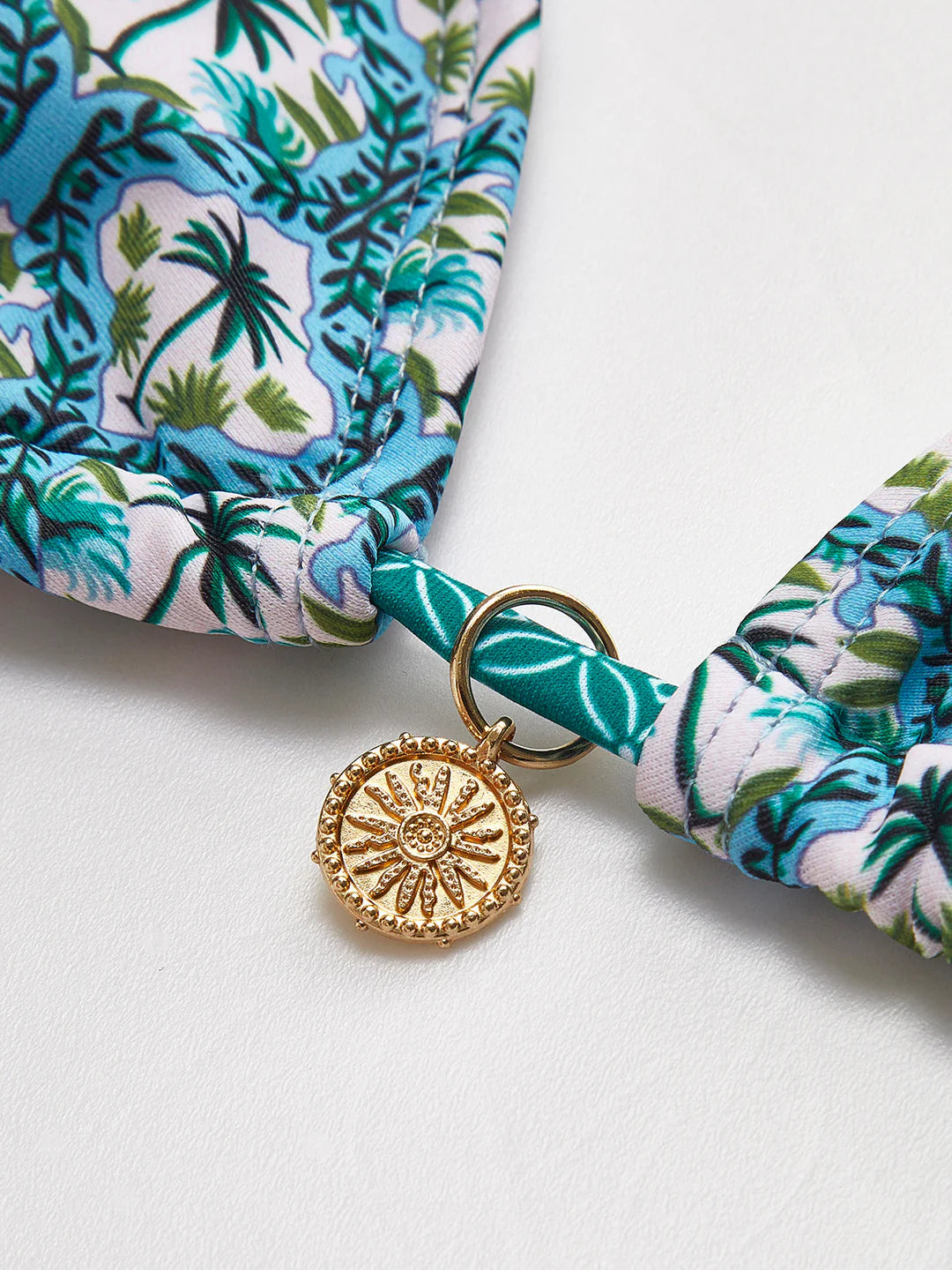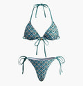 Üçgen kesim üst ve bağlamalı alt parça, klasik ve zarif bir görünüm sunar.