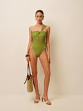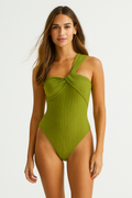 💚 Tek Omuz Şıklığı: Zeytin Yeşili Dokulu Mayo