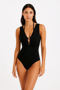 Zarif tasarımıyla öne çıkan bu asimetrik siyah tek parça mayo ve palmiye desenli pareo seti, sofistike bir tatil şıklığı sunuyor. Tek omuz detayı ve altın halka aksesuarıyla modern bir görünüm kazanan mayo, vücuda kusursuz otururken pareo, plaj stilini tamamlayan şık ve rahat bir dokunuş sağlıyor.