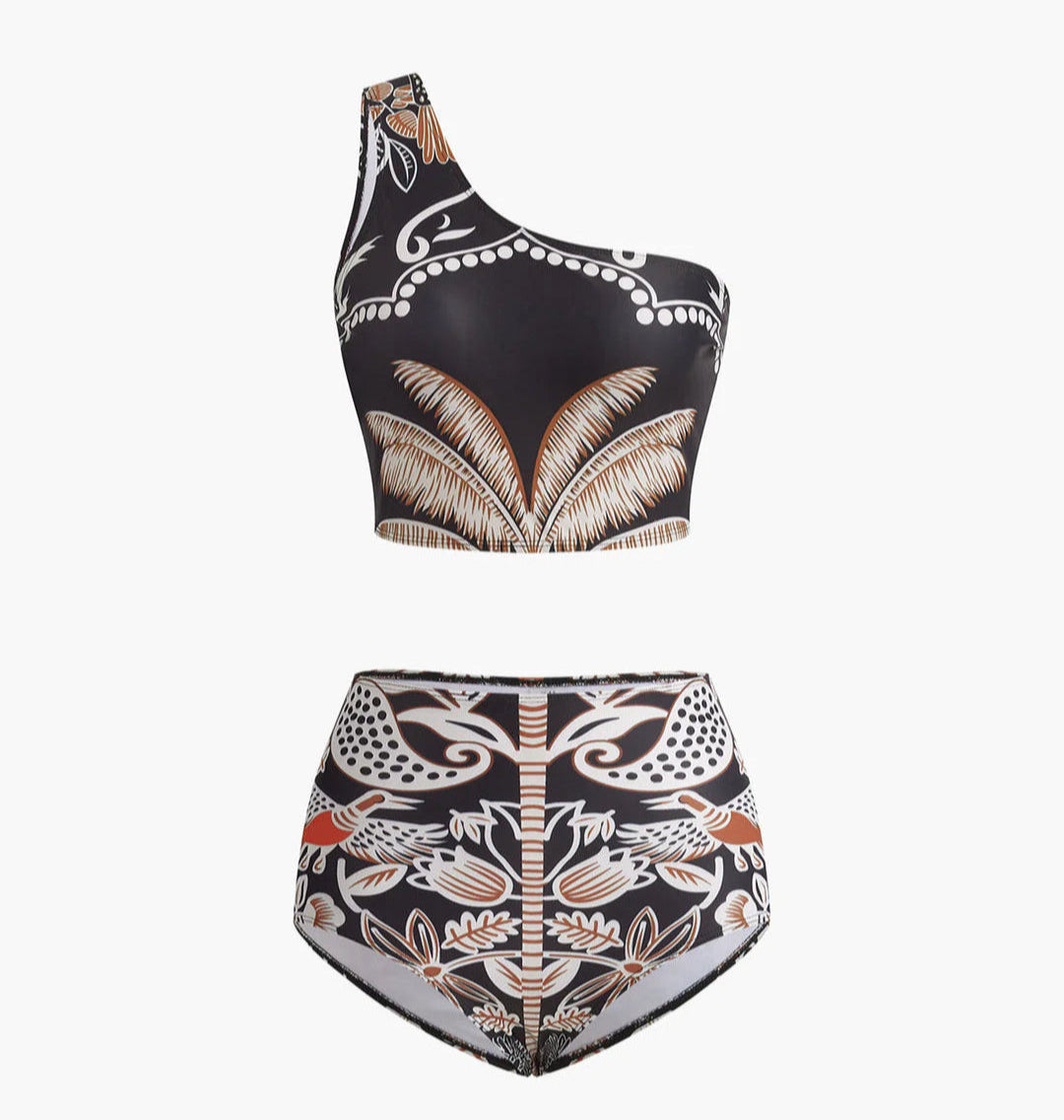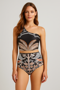 Yüksek bel (high-waisted) alt tasarım, retro bir dokunuş katar ve bel bölgesini toparlayıcı bir etki yaratır.