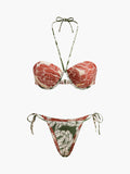 Desen ve Renk: Üzerindeki desenler, bikini ile aynı kırmızı çiçek desenlerinden oluşmakta ve yeşil kenar şeritleriyle çerçevelenmiş.