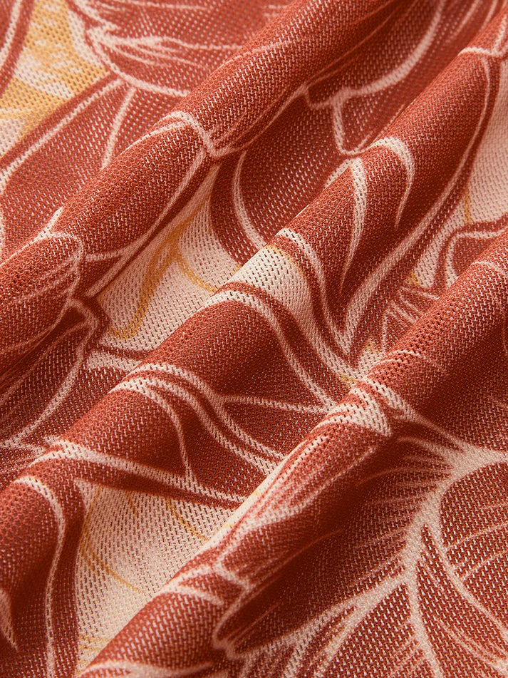 Desen ve Renk: Üst kısmın ana renkleri kırmızımsı tonlar ve zeytin yeşili olup, üzerine beyaz çiçek desenleri işlenmiştir. Çiçek desenleri tropikal bir hava katmaktadır.