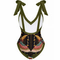 Egzotik desenleri ve sofistike detaylarıyla dikkat çeken bu mayo seti, sahil şıklığınıza özgün bir hava katıyor. V yaka tasarımı feminen bir silüet sunarken, omuzdaki bağlama detayları zarif bir dokunuş ekliyor. Renkli kuş ve çiçek desenleriyle süslenen mayo, aynı desenli pareo ile kombinlenerek bütünlük sağlıyor.