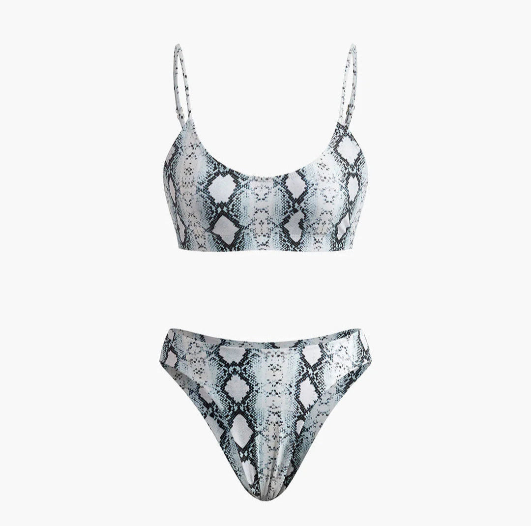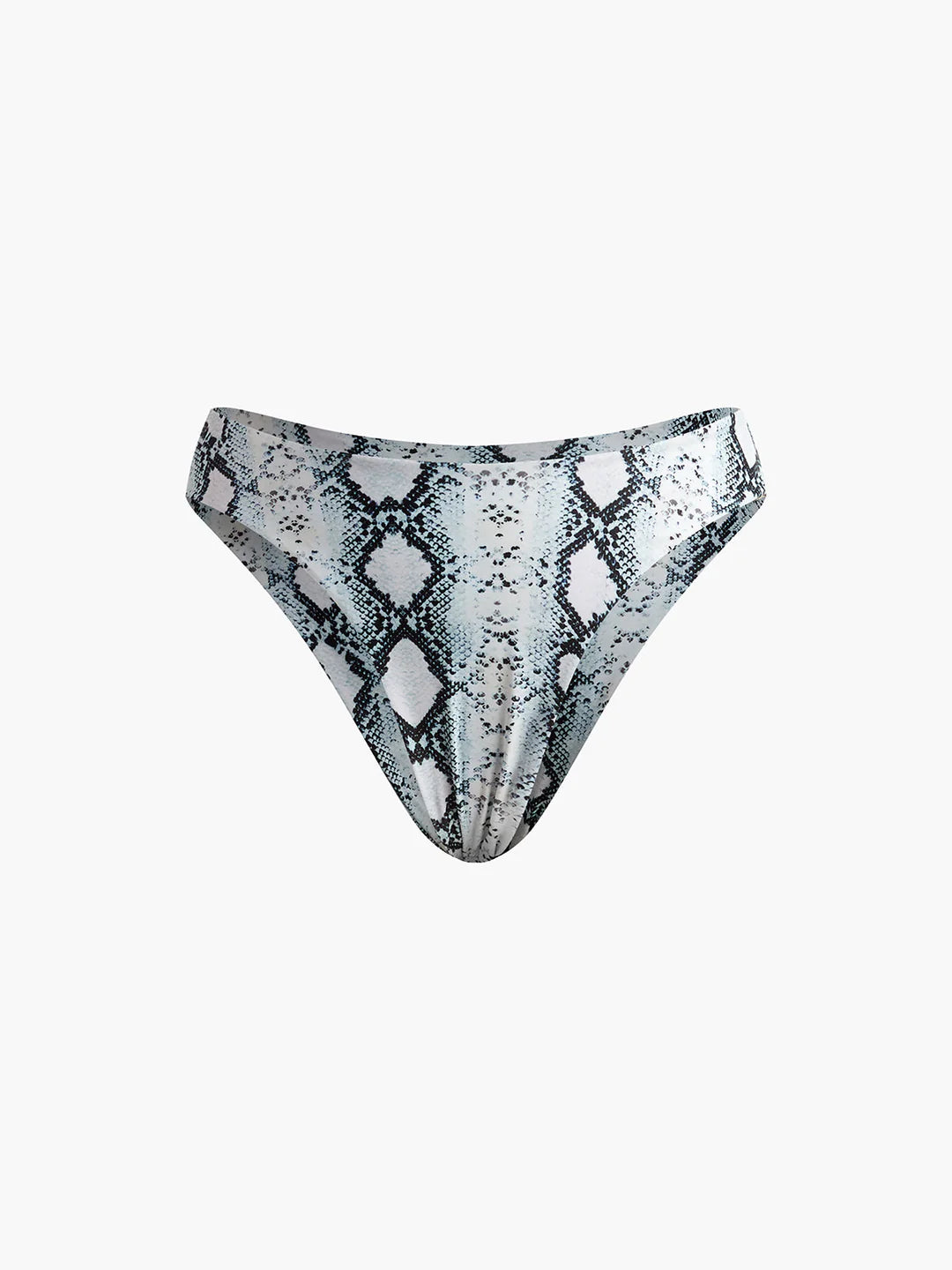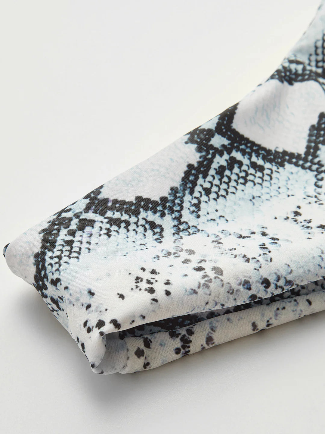 Yılan derisi (snake print) deseniyle vahşi ve sofistike bir hava yaratır.