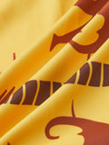 Sarı zemin üzerine kahverengi desenlerle sıcak ve enerjik bir renk kombinasyonu sunar.