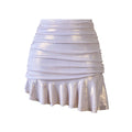 Alt parça, vücuda oturan ve fırfırlı bitişiyle feminen bir hava katan kısa bir plaj eteğidir.