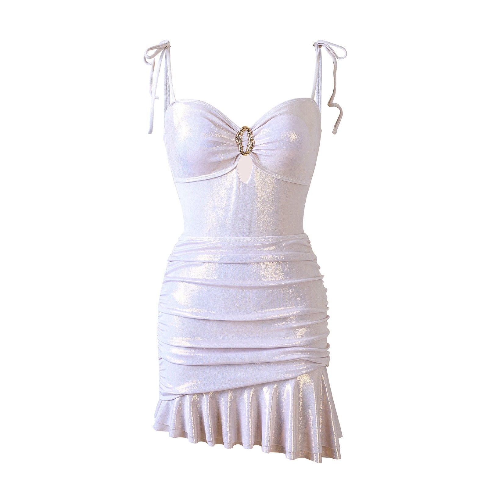 İnce askıları omuzdan bağlamalıdır, bu da hem ayarlanabilirlik hem de romantik bir görünüm sunar.