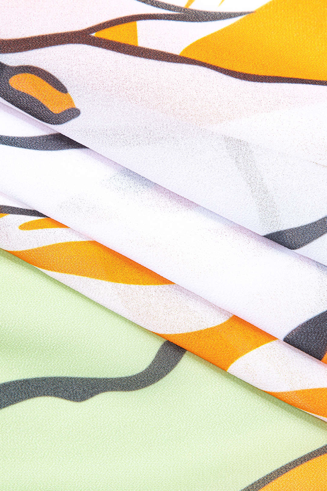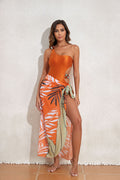 Desen: Mayo sade ve dokulu, pareo ise tropikal yaprak desenli