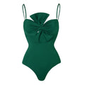 İnce askılı, zarif bir tasarıma sahip ve ön kısmında estetik bir fiyonk detayı ile dikkat çeken yeşil mayo.