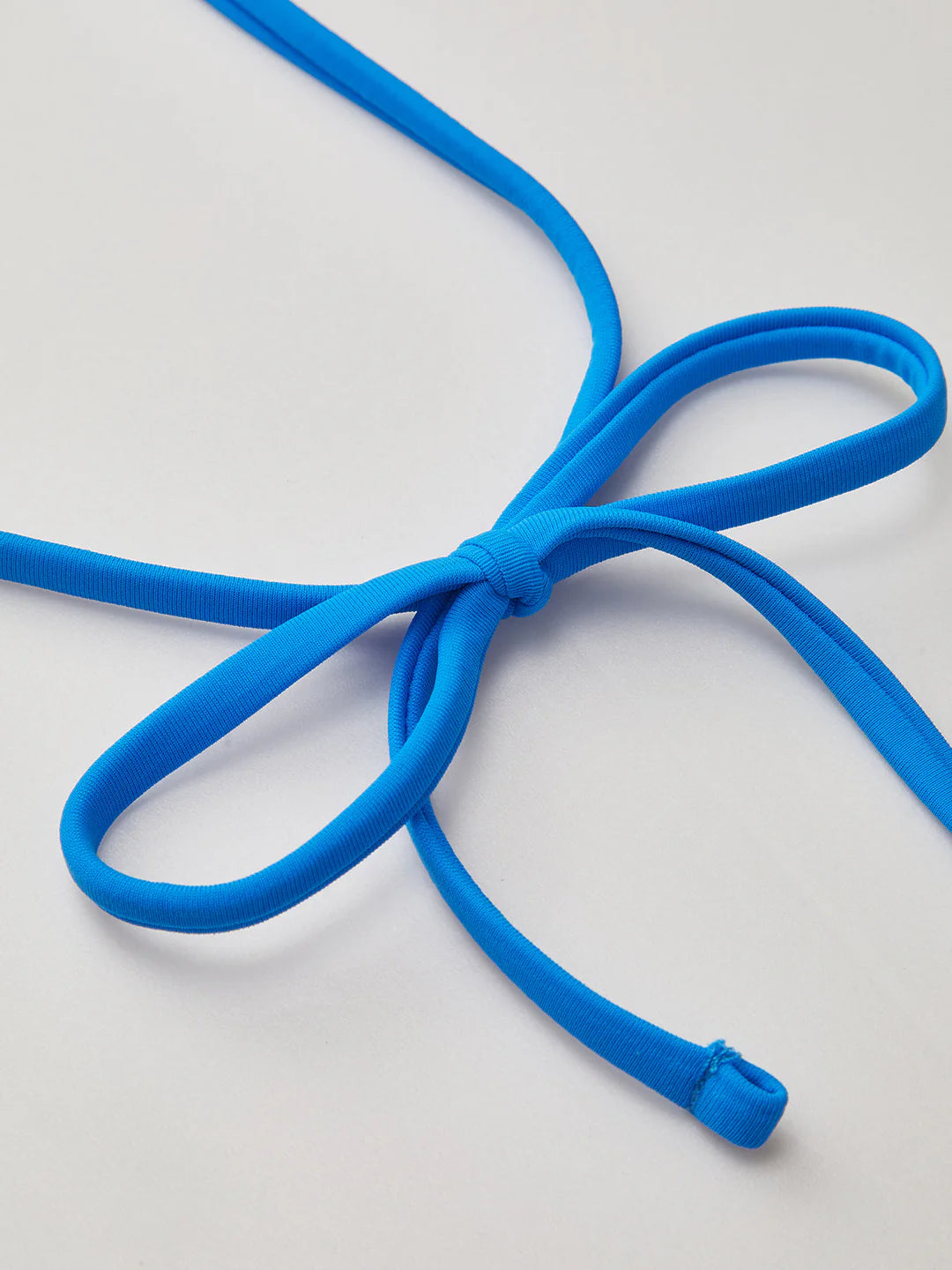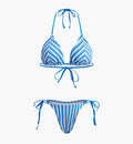 Üçgen üst ve bağlamalı alt parçadan oluşan klasik bir bikini seti.