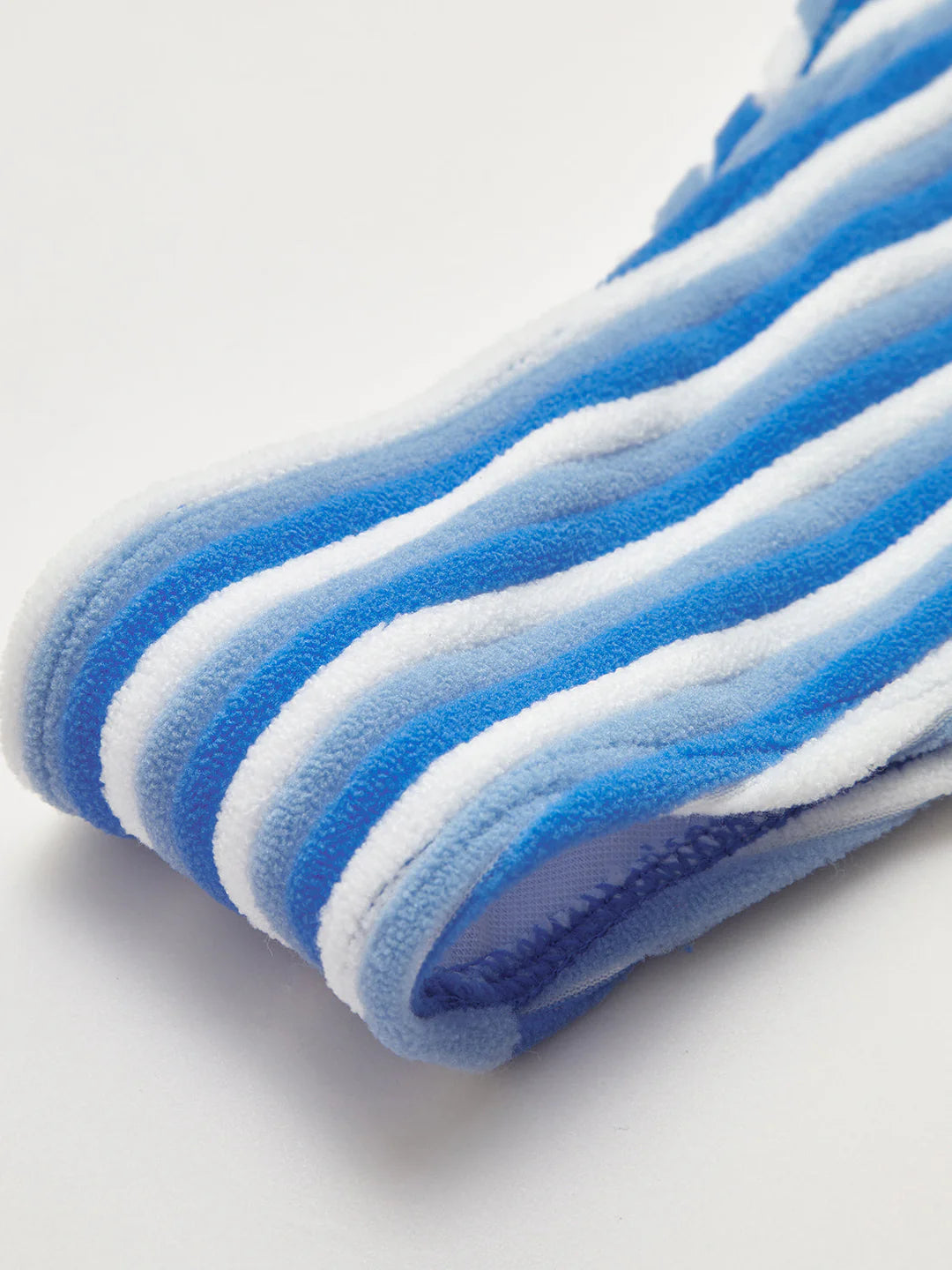 Mavi ve beyazın uyumuyla oluşturulmuş zarif, çizgili bir tasarım.